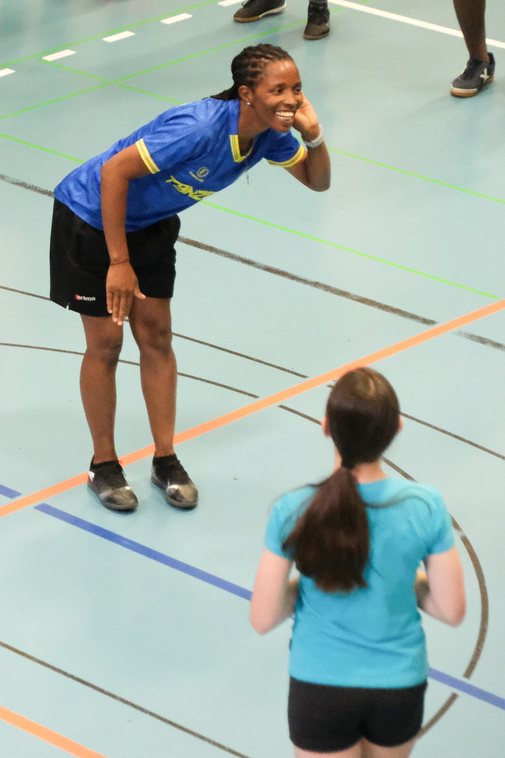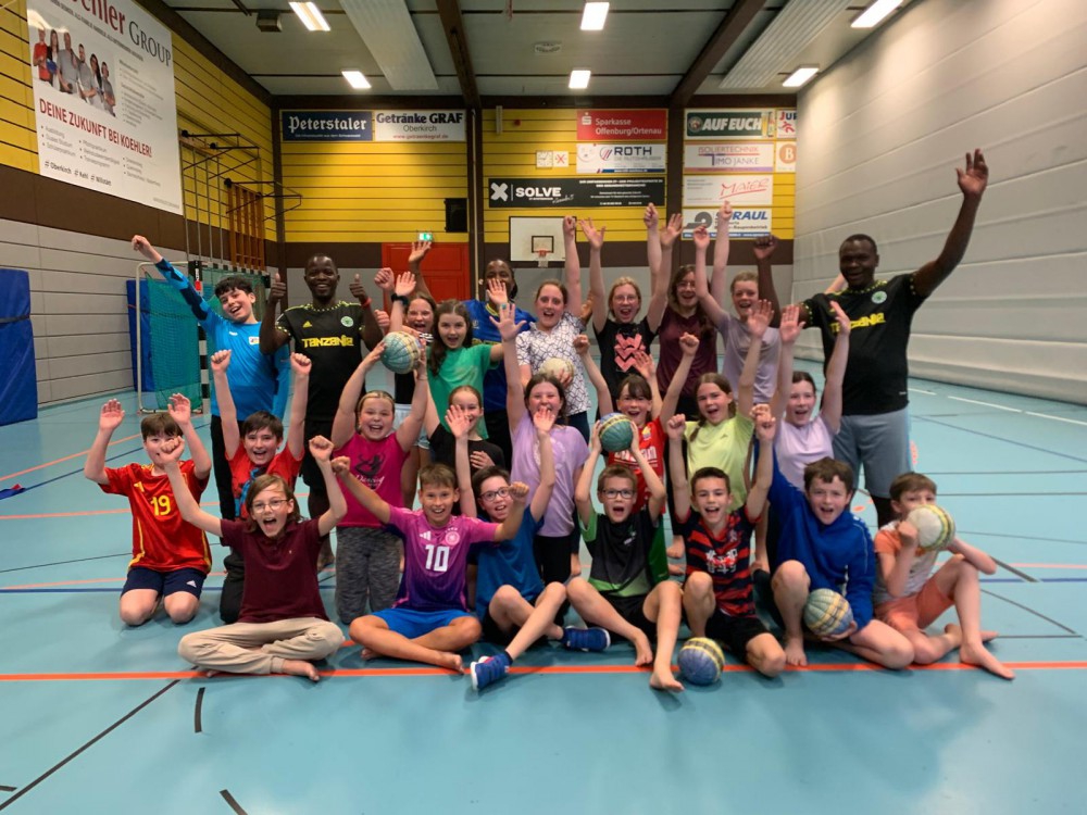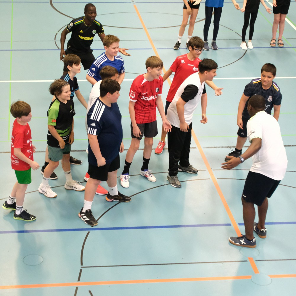 Die Tansania-Woche bot allen Klassen die Möglichkeit, einen Einblick in den tansanischen Sportunterricht zu erhalten. Unter der Leitung von drei Fußballtrainern aus Tansania erlebten die Schüler eine besondere Form des Sportunterrichts, die aus mehreren Teilen bestand. Zu Beginn wurden sie durch gemeinsames Klatschen, Singen und Tanzen auf die Aktivitäten eingestimmt, was nicht nur den Teamgeist förderte, sondern auch eine fröhliche Atmosphäre schuf. Im anschließenden Teil des Unterrichts spielten die Schüler barfuß mit einem aus Plastiktüten selbst hergestellten Ball Fußball. Diese kreative Herangehensweise sensibilisierte die Schüler für das Thema Nachhaltigkeit und zeigte, wie man mit einfachen Mitteln Spaß am Sport haben kann.