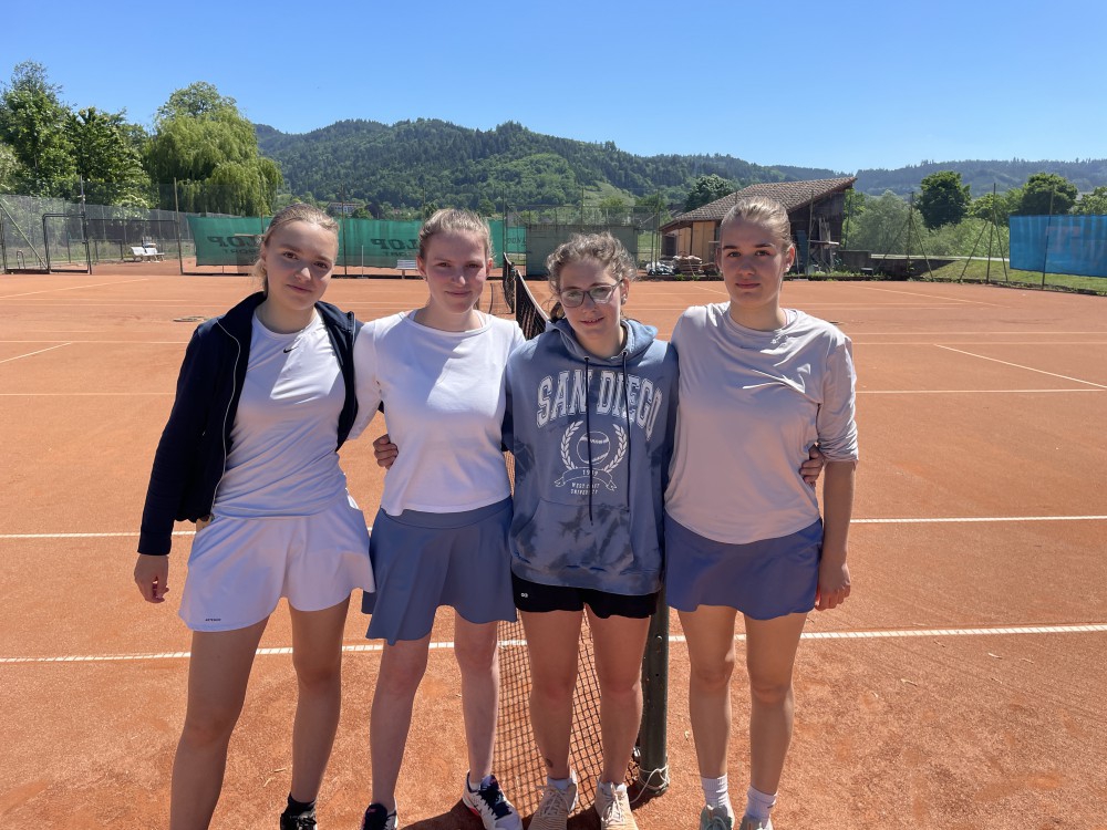 Die neu formierte Schulmannschaft trat bei bestem Wetter auf der idyllisch gelegenen Anlage in Gengenbach an. Besonders stark präsentierten sich an den Spitzenpositionen Piros Becker (TC Bohlsbach) und Meike Treyer (TC Oppenau), die ihre Einzel mit starken Grundschlägen und beeindruckender Sicherheit gewannen. Auch Theresa Domke (TC Oberkirch) holte in ihrem ersten Einsatz für die Juniorinnen des HFG einen glatten Sieg. Clara Meier (TC Nußbach) ebenfalls neu im Team, zeigte großen Kampfgeist, musste sich jedoch knapp geschlagen geben.