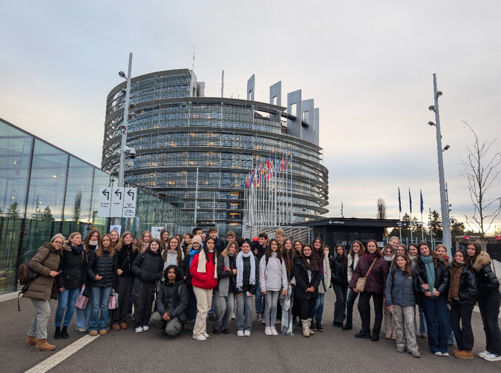 Ab Montag startete das gemeinsame Programm, das von der Schule aus organisiert war. Die Gruppe verbrachte den ganzen Tag in Straßburg, wo sie das Münster besichtigten, über den Weihnachtsmarkt laufen konnten und danach den restlichen Tag im Europaparlament verbrachten. Ein langer und trotzdem sehr aufregender Tag für beide Gruppierungen.