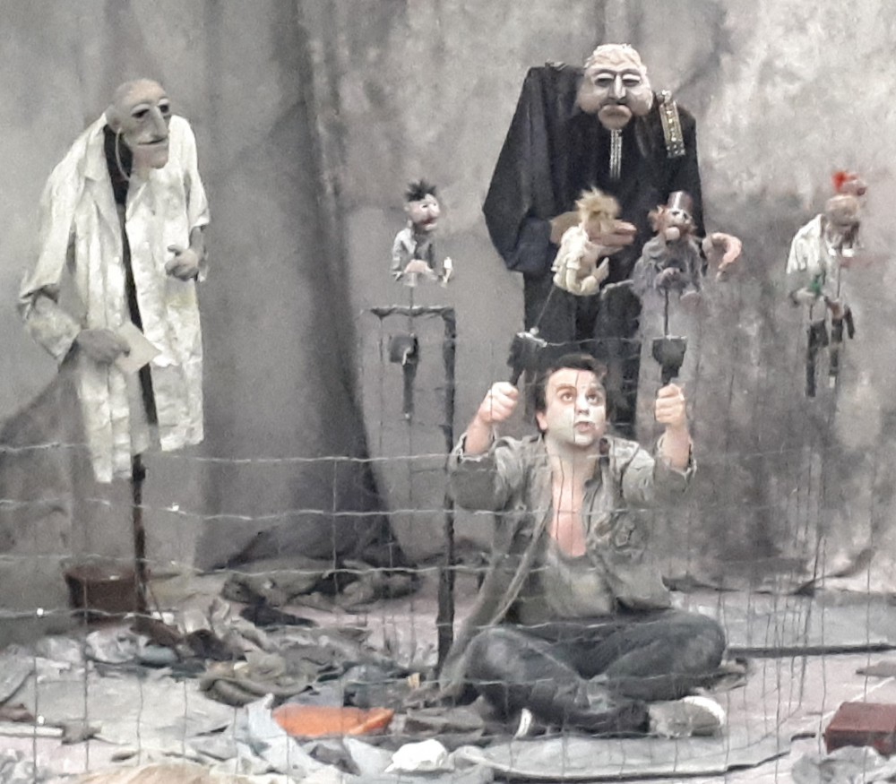 Das „Theater mobile Spiele“ hat nun „Woyzeck“ am Hans-Furler-Gymnasium vor 80 begeisterten Abiturientinnen und Abiturienten aufgeführt. Der 32-jährige Rouven Honnef verkörpert auf beeindruckende Art und Weise nicht nur Franz Woyzeck, sondern spielt auch alle anderen Figuren in Form von lebensgroßen Puppen. Das düstere Bühnenbild, die gespenstischen Figuren, die quälende Musik und die Stimmen aus dem Off sorgen für eine unheimlich intensive Atmosphäre im Klassenzimmer. Es ist nicht schön zu sehen, wie dieser Franz Woyzeck in den Wahn getrieben wird, aber es war ein eindrückliches Theatererlebnis, das die Schülerinnen und Schüler wohl nicht vergessen werden.