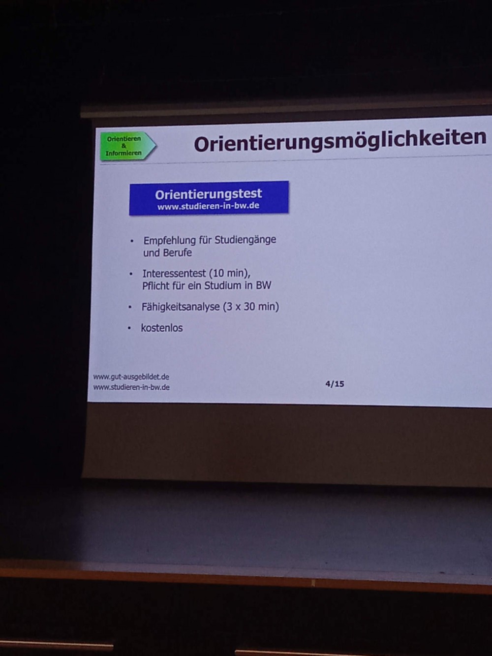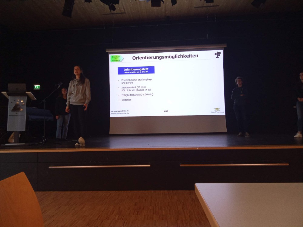 Am 8. Oktober war es soweit: Vier Studienbotschafter mit unterschiedlichen Studienhintergründen besuchten die Jahrgangsstufe J1 und teilten ihre Erfahrungen mit den Schülern. In einem lebendigen und anekdotenreichen Vortrag erklärten sie den Schülerinnen und Schülern, wie man den passenden Studiengang oder die passende Ausbildung findet.