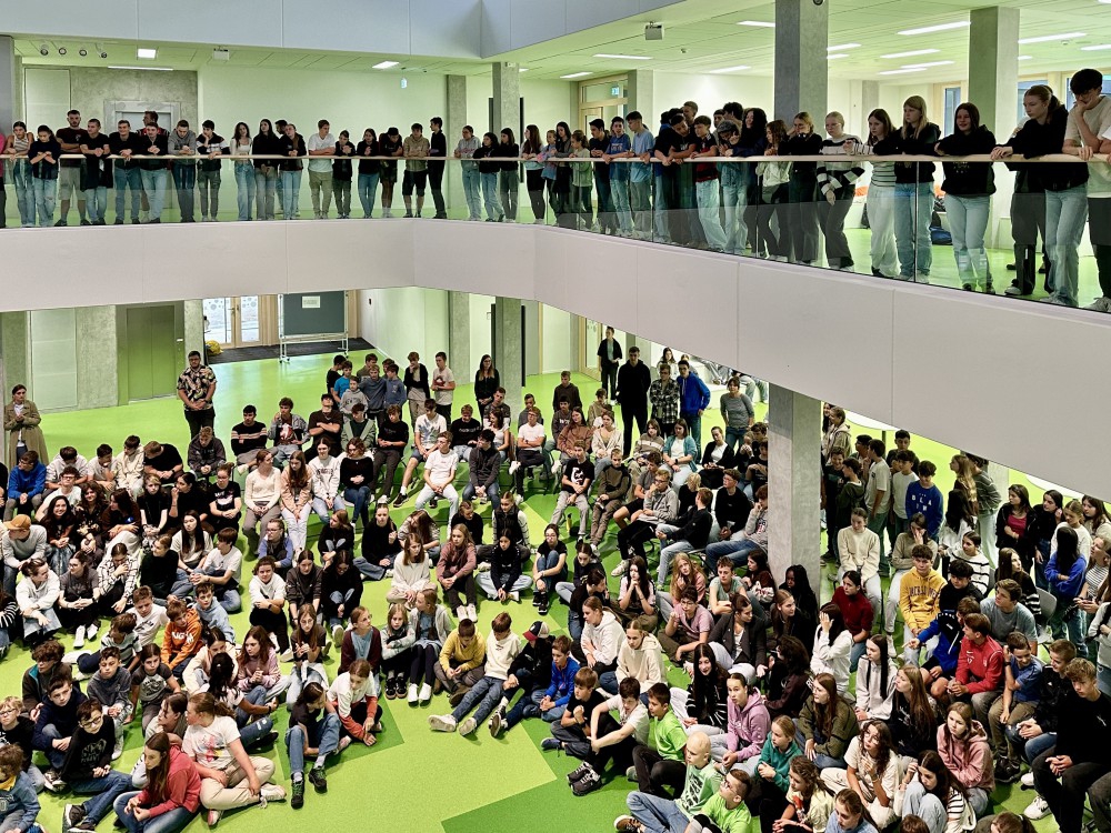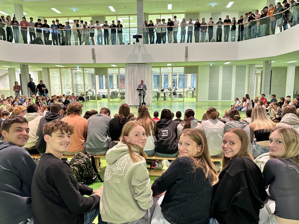Schulleiter Kruse begrüßte alle Schüler und Lehrer im Zentrum des renovierten Schulhauses im Rahmen des traditionellen Auftaktkonvents.
