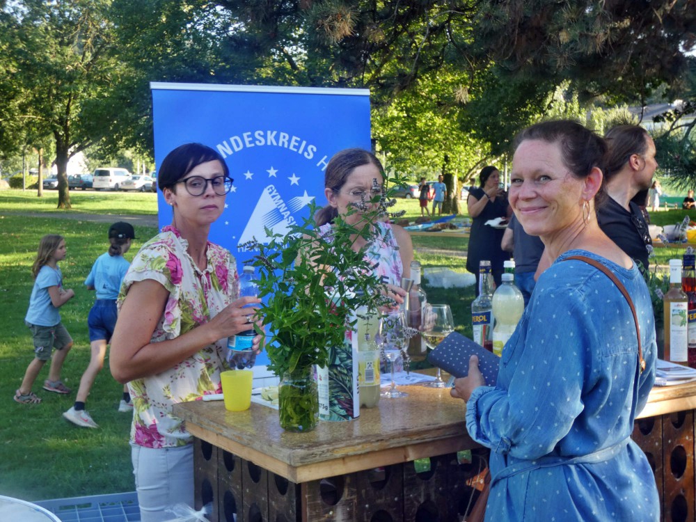 Organisiert hat den Abend die Jahrgangsstufe 1. Auch für das leibliche Wohl war bestens gesorgt. So gab es mitgebrachte Salate, Kuchen und auch Grillgut mit vegetarischen Alternativen. Sommercocktails wurden vom Freundeskreis des HFG ausgeschenkt.