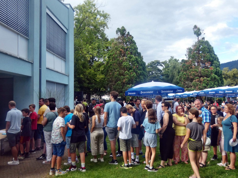 Die Tatsache, dass der Schulhock dieses Jahr auf der großen Wiese vor der Sporthalle stattfand, sorgte bei den Besuchern für Begeisterung, weil es viel Platz auf der Wiese gab, sodass die Kinder sich frei bewegen konnten.