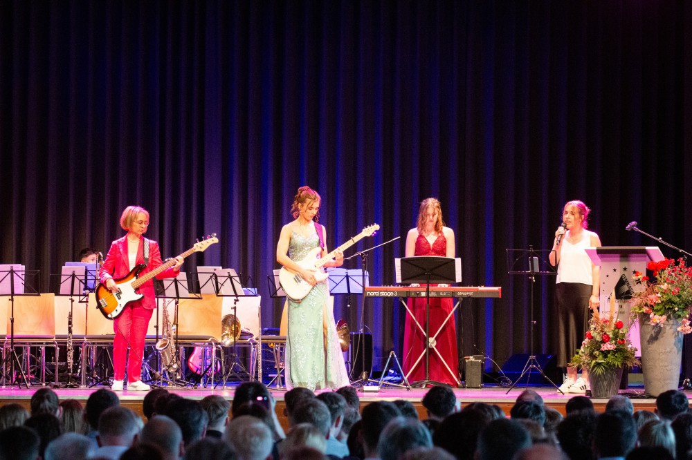 Für die musikalische Umrahmung der Feier sorgte die Abi-Band mit atmosphärisch perfekt ausgewählten Beiträgen unter der Leitung von Marla Munz. Mit ihren mitreißenden und emotionalen Darbietungen trug die Band entscheidend zur festlichen Stimmung bei und gab dem Abend einen würdigen Rahmen. Die Abiturfeier war nicht nur ein Abschluss, sondern auch ein Aufbruch in eine neue Phase des Lebens. Die Abiturienten haben ihre Schulzeit erfolgreich abgeschlossen und stehen nun vor neuen Herausforderungen und Möglichkeiten. Nach der feierlichen Zeugnisübergabe entließ Schulleiter Kruse die Schülerinnen und Schüler mit einem Rückgriff auf das zuvor erwähnte Finale. „Denkt daran. Nach dem Spiel ist vor dem Spiel.“ Nun beginnt ein neuer Abschnitt und es bleibt spannend zu sehen, welche Farben die Absolventen auf das weiße Papier des Lebens malen werden.