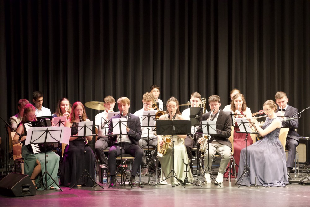 Eine besondere Würdigung erfuhren einige Schülerinnen und Schüler durch den Freundeskreis der Schule, vertreten durch Martina Tauchert-Nosko und Patrick von Maravic, der Sonderpreise für das Engagement in der Big Band (Marla Munz, Sára Becker), Technik (Linus Huber) und im Orchester (Sára Becker) überreichte. Vorsitzende Martina Tauchert-Nosko äußerte ihren Stolz über die Preisträgerinnen und den Preisträger, das HFG durch ihren Einsatz nach außen würdig vertreten zu haben.
