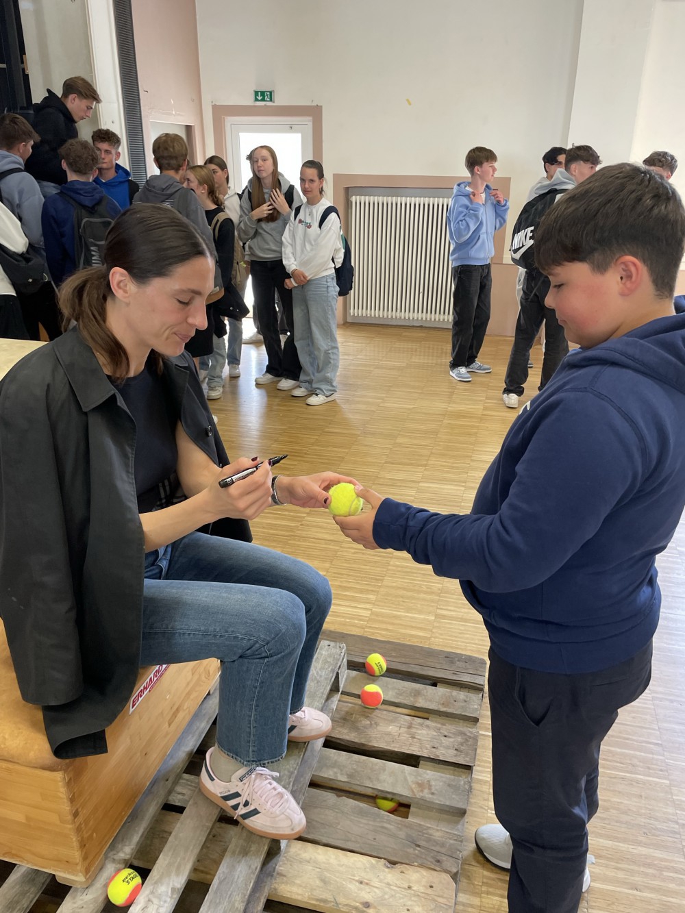 Auf Einladung des Gymnasiums Kenzingen nahmen Vertreter des Tennisteams des HFG an einer Veranstaltung mit der ehemaligen Weltklassespielerin Andrea Petkovic teil. Letztere las aus ihrem neuen Buch, berichtet über ihre Karriere und nahm sich viel Zeit für Autogramme und Selfies. Außerdem spielte sie zur Einweihung eines Minitennisfelds auf dem Schulhof des Gymnasiums Kenzingen mit vielen tennisbegeisterten Kindern und Jugendlichen aus Vereinen und Schulen der Region einige Bälle.