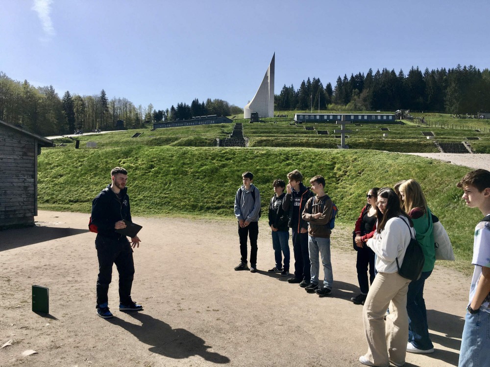 Am Dienstag, den 30. April, wurden die knapp 90 Jugendlichen von acht Schülerguides der Oberstufe über das Gelände des ehemaligen Konzentrationslagers im Elsass geführt. Dabei erklärten sie genau, was sich an den verschiedenen und teilweise bedrückenden Orten abgespielt hatte: z.B. im Lager, im Krematorium, im Steinbruch, im ehemaligen Hotel „Le Struthof“ und in der Gaskammer. Die von den Guides eingesetzten Materialien wie Fotos, Zeichnungen, Karten und Zitate halfen den Schülerinnen und Schülern, sich ein detailliertes Bild vom Leben im KZ zu machen. Voller Eindrücke und Informationen ging es im Bus zurück nach Oberkirch. Einig waren sich alle Schülerinnen und Schüler: Es ist wichtig, sich an die NS-Gräueltaten zu erinnern, damit sie zum einen nicht in Vergessenheit geraten und zum anderen so etwas nie wieder passiert.