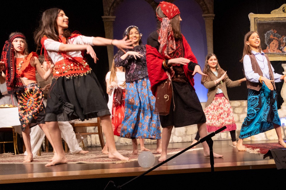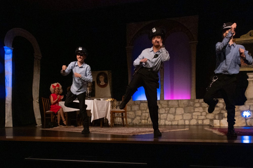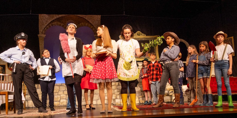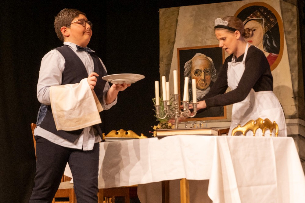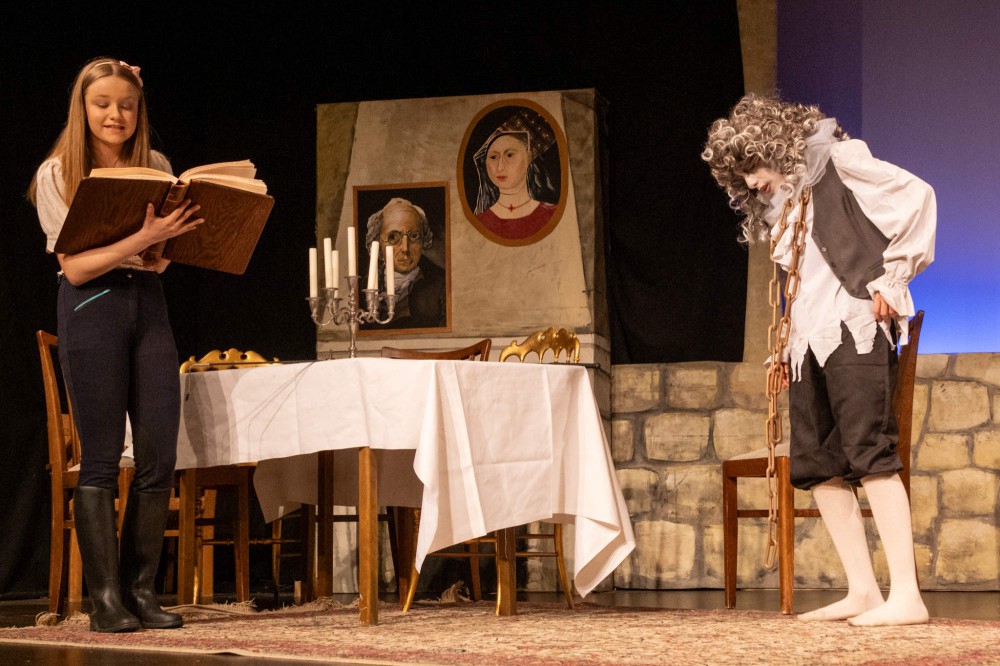 Der Amerikaner Hiram B. Otis (Servan Taycur/Ella Noack) zieht, trotz der ausdrücklichen Warnung vor dem Gespenst, mit seiner Frau (Lucy Vollmer/Johanna Huber) und seinen vier Kindern Virginia (Emely Kohler/Selena Laffin), Washington (Johann Kohler/Lenz Ehmann) und den Zwillingen Johnny (Charlie Endstrasser/Anni Baumann) und Jenny (Fatima Schneider/Rosalie Baitsch) in das Schloss ein, woraufhin sich das Gespenst schon bald bemerkbar macht. Die Familie zeigt jedoch nur wenig Interesse an dem Geist. Auch die Warnungen der Haushälterin (Johanna Huber/Selena Laffin) und der Gärtnerin (Maria Komar/Emma Sucher) zeigen keine Wirkung. Besonders den Zwillingen kann er keine Angst einjagen. Im Gegenteil, die beiden schüchtern eher das Gespenst ein, indem sie ihm einige Fallen stellen. Eines Tages trifft die ältere Tochter Virginia auf das Gespenst. Sie ist die letzte Hoffnung des Geistes, nun endlich seine Ruhe zu finden. Dazu muss sie Sir Simon am Todestag seiner Frau von einem erneuten Mord abhalten. Während sie sich auf diese Aufgabe einlässt, beginnt im Schloss eine verzweifelte Suche nach ihr, wobei die Sinti und Roma (Emine, Topal, Ella Noack, Lea Schmidt, Samira Huber, Sarah Döring, Mara Spraul, Finn Schmidt, Rüya Ekici, Sajra Memic, Nele Roser) verdächtigt werden, sie entführt zu haben. Die Polizei (Angelina Bosjnak, Kilian Kohler, Shara Jakob, Elise Trüg) steht zunächst vor einem Rätsel. Als Virginia jedoch mit einem Kästchen voller Schmuck zurückkehrt, das ihr das Gespenst zur Belohnung überlassen hat, löst sich alles in Wohlgefallen auf. Zu guter Letzt kehrt im Schloss Canterville wieder Frieden ein. In der Vorstellung wurde sehr viel gelacht, vor allem sorgten die Zwillinge und auch der steife britische Butler Mr. Parker (Lenz Ehmann/Servan Taycur) immer wieder für Kurzweil und viel Gelächter.