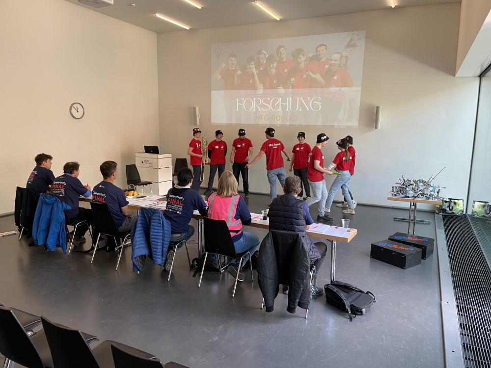 Die HFG-RoboS unter der Leitung von Henning Scheid und Raphael Blessing gehören zu den besten 730 Teams aus dem deutschsprachigen Raum Europas und haben sich durch eine bemerkenswerte Kombination aus Engagement, Teamgeist und Effizienz ausgezeichnet. Ihre Reise begann mit monatelanger Vorbereitung, in der das Team einen kompakten und vielseitigen Roboter konstruierte. Es wurde programmiert, geforscht und Präsentationen vorbereitet, um gemeinsam den spannenden Wettbewerb bestreiten zu können.