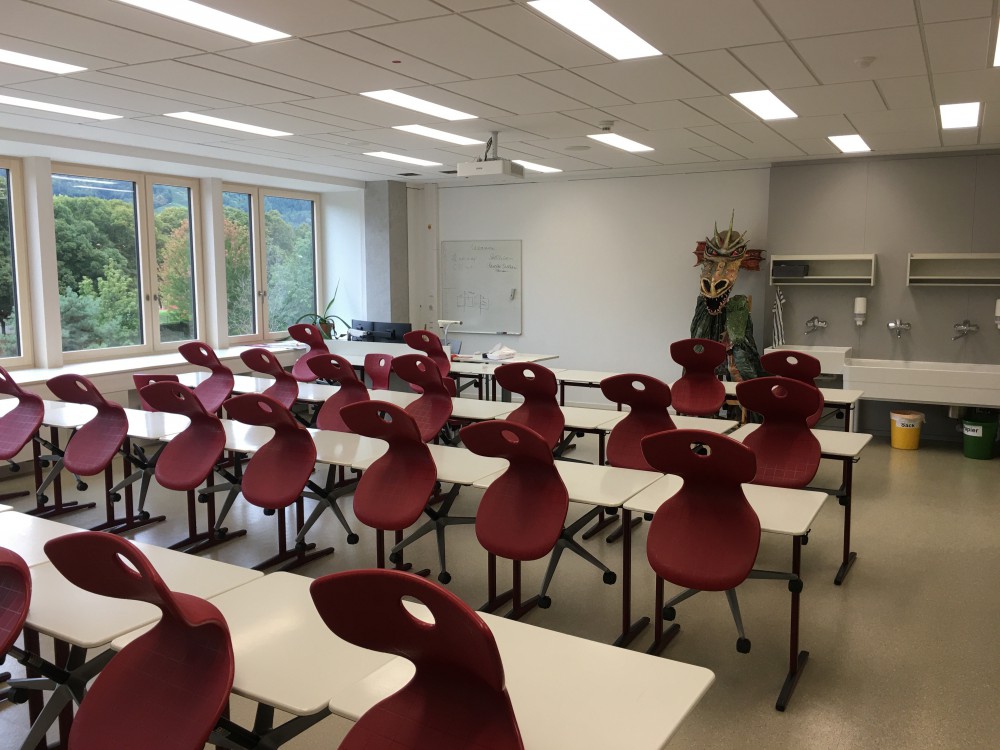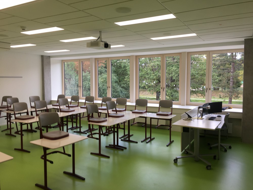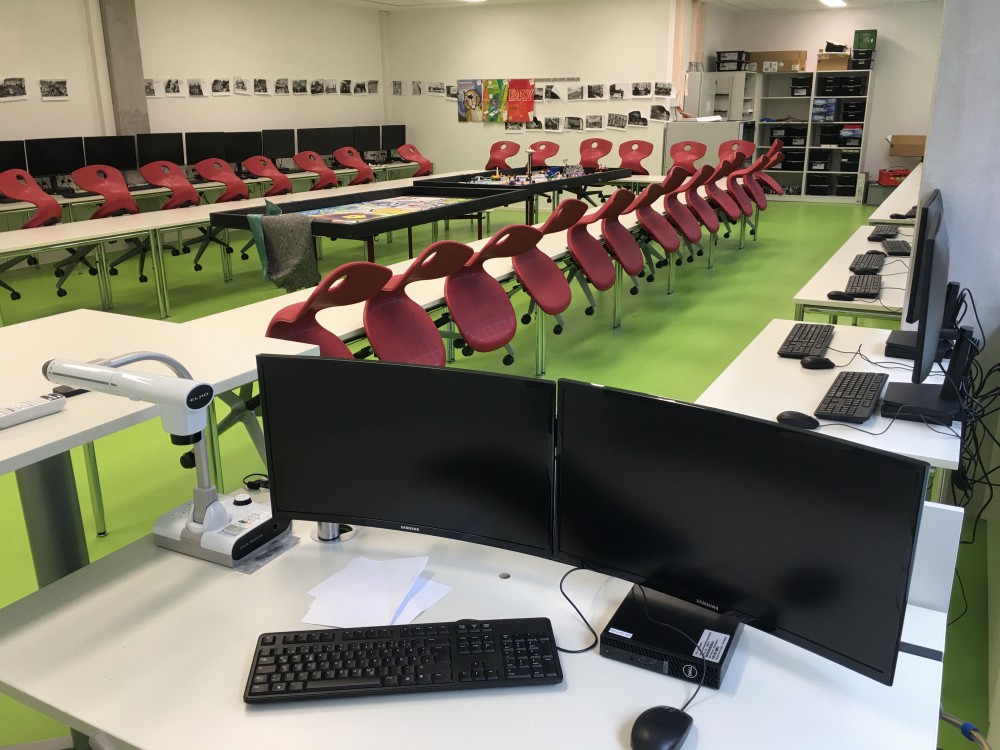 Unterricht nun nur noch in komplett neuen Räumen. Modernste Medientechnik. Besichtigung am Tag der offenen Tür: 3.2.2024.