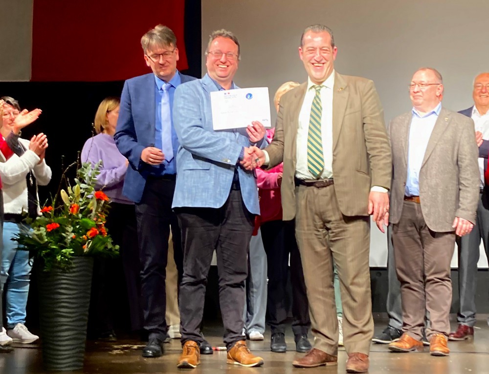 Generalkonsul de Maisonneuve hob in seiner Würdigung die hervorragende Arbeit der Schule im Bereich der französischen Sprache hervor. Er erinnerte auch an die Bedeutung des Französischen als Weltsprache und als Schlüssel für Begegnungen in der großen Welt der Frankophonie. Als beispielhaft bezeichnete er die zahlreichen Partnerschaften des Gymnasiums Oberkirch mit Schulen in Frankreich und die damit verbundenen vielfältigen Begegnungen junger Menschen. Auf diese Weise fördere die Schule in besonderer Weise das Heranwachsen überzeugter junger Europäer, die heute und in Zukunft mehr denn je gebraucht würden. De Maisonneuve lobte aber auch die Unterstützung des Französischprogramms der Schule durch die politische Gemeinde, durch Stadtverwaltung und Gemeinderat. Für die Stadt Oberkirch nahm Fachbereichsleiter Matthias Benz an der Feier teil. Besonders erfreut zeigte sich der Generalkonsul auch darüber, dass die lokale Wirtschaft die Schule in ihren europäischen Bemühungen unterstützt. Hier hob er insbesondere das Engagement der Firma Koehler und der Familie Furler hervor. Mit ihren Stiftungen ermöglichen sie wertvolle, deutsch-französische Projekte und Begegnungen. Für die Familie Furler nahmen Wolfgang und Klaus Furler an der Veranstaltung teil.