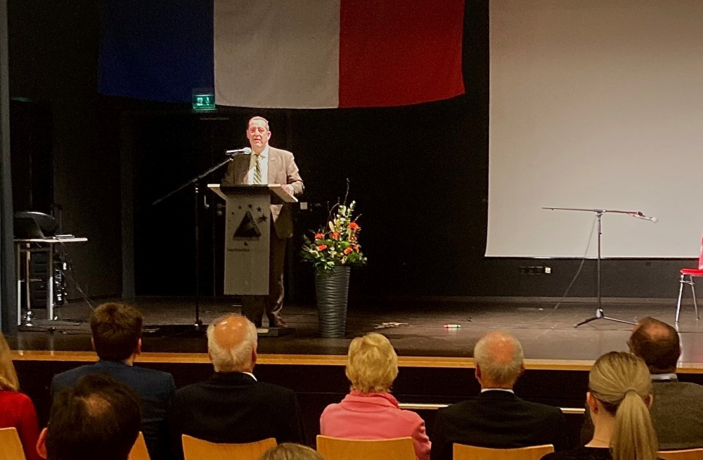 Schulleiter Ingo Kruse betonte in seiner Ansprache die große Bedeutung des Französischunterrichts und des bilingualen Zuges für das Gymnasium Oberkirch. Er erinnerte auch daran, dass die Schule den Namen eines großen Förderers der deutsch-französischen Freundschaft und eines der wichtigsten Brückenbauer für das vereinte Europa trägt: Prof. Dr. Hans Furler, Ehrenbürger der Stadt Oberkirch und erster deutscher Präsident des Europäischen Parlaments. Er wertete die interkulturelle Erziehung, die der bilinguale Zug in besonderer Weise vermittle, als wichtiges Element gegen jede Form von Intoleranz und Extremismus.
