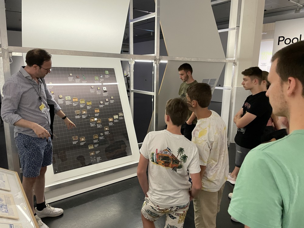 Am Donnerstag, dem 13.07.2023, fuhren die Robotikteams des HFGs, HFG-RoboS, HFG-BotS und HFG-RoboKirch, in Begleitung der beiden Coaches Henning Scheid und Raphael Blessing nach Karlsruhe ins ZKM (Zentrum für Kunst und Medien | ZKM), das Zentrum für Kunst und Medien. Dort konnten sie sich die Ausstellung zum Thema künstliche Intelligenz und der Renaissance 3.0 anschauen und einige Ideen für die Forschungsaufgabe des bevorstehenden Wettbewerbs der First Lego League sammeln. Die Teams nahmen an einer spannenden Führung durch das Museum teil. Dabei beeindruckte unter anderem ein Kuka Roboter, welcher eine Marslandschaft anhand von Bildern des NASA-Marsrover Curiosity zeichnete, ohne den Stift abzusetzen.