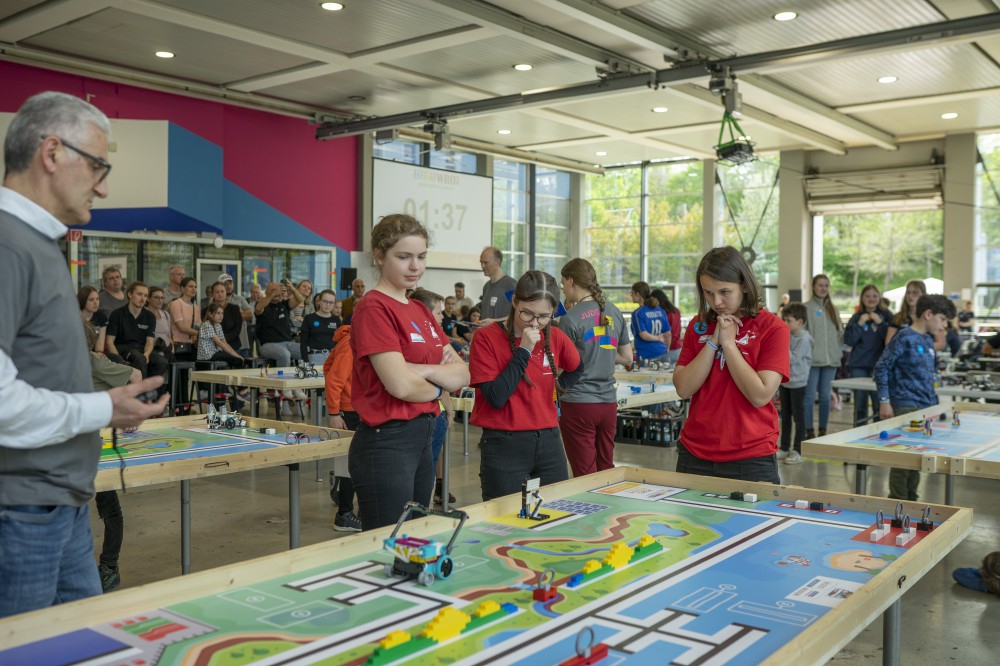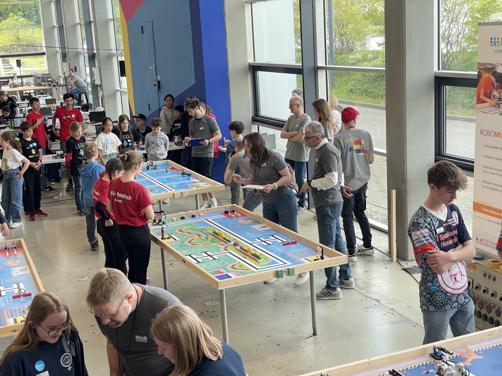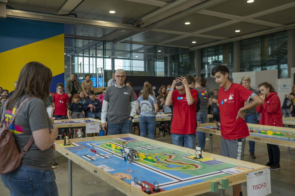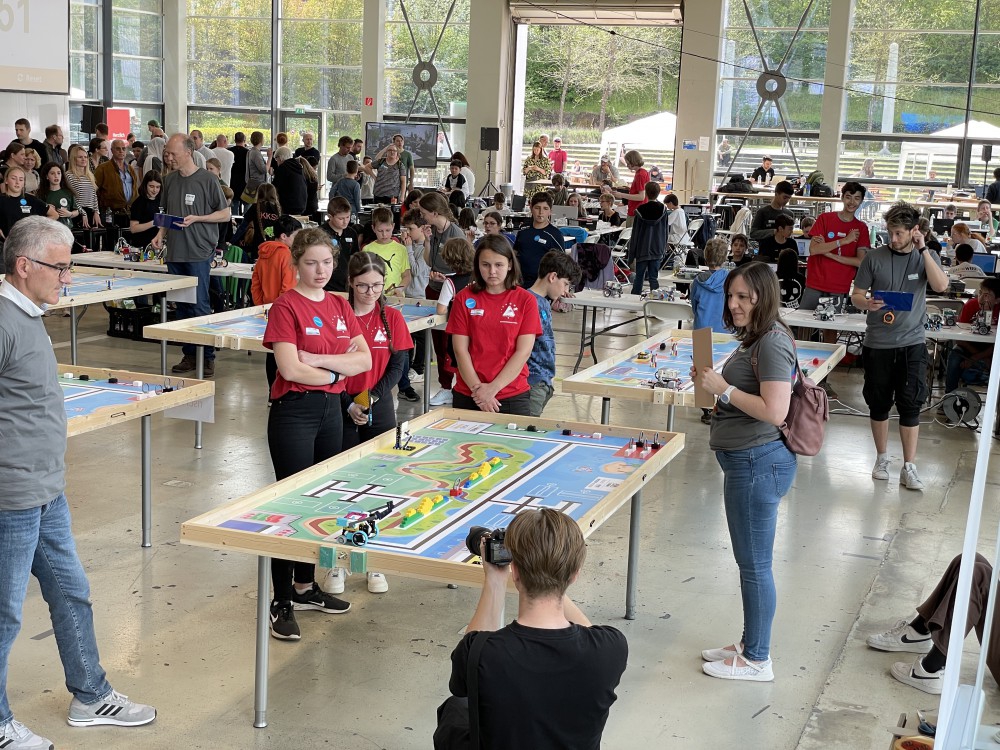 Mit viel Eifer und Engagement machten sich die Schülerinnen und Schüler daran, ihre selbstgebauten Roboter zu programmieren und die gestellten Aufgaben zu lösen. Dabei ging es darum, die Roboter so zu programmieren, dass sie bestimmte Aufgaben autonom erledigen konnten, wie zum Beispiel das Transportieren von Gegenständen oder das Durchfahren von Hindernissen. Die Teams hatten insgesamt zwei Stunden Zeit, ihren Roboter aus dem Gedächtnis aufzubauen, um dann auf Zeit in vier Wertungsrunden möglichst viele Aufgaben zu lösen und Punkte zu sammeln.
