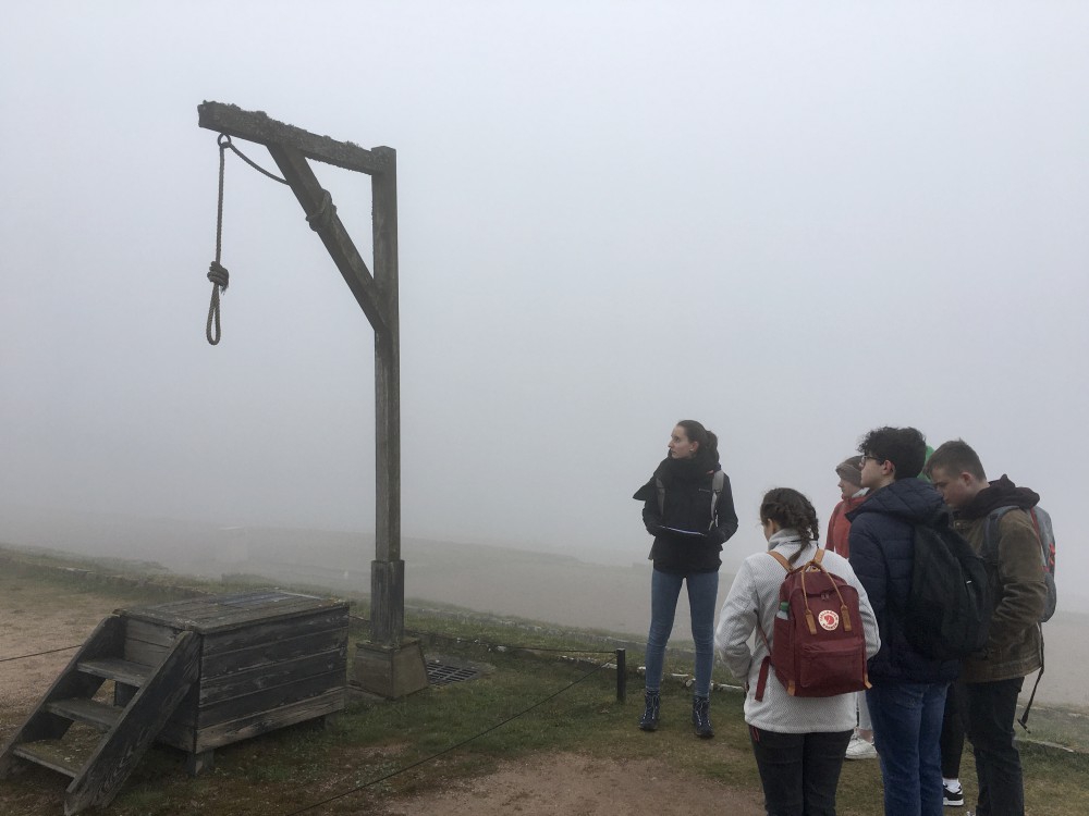 Die Klassenstufe neun besuchte am 18.04.23 das ehemalige Konzentrationslager Natzweiler- Struthof, das heute als Gedenkstätte erhalten ist. Geführt wurden wir von Schülerinnen und Schüler der Jahrgansstufe 1. Schon seit längerer Zeit haben wir uns im Geschichtsunterricht mit der NS-Zeit und dem Zweiten Weltkrieg beschäftigt. Die lehrreiche Exkursion vertiefte den durchgenommenen Unterrichtsstoff und machte es möglich, besser nachzuvollziehen, wie die Situation damals war. Die Gedenkstätte zeigte die Grausamkeit der Naziherrschaft. Die eindrucksvollen Bilder bleiben im Kopf und regen weiter zum Nachdenken an. Die Schülerinnen und Schüler der Klassen 9 waren sich einig, dass dieses leidvolle Kapitel der deutschen und europäischen Geschichte nicht in Vergessenheit geraden sollte.