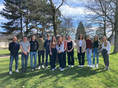 Wir wünschen den Prüflingen viel Erfolg und sind gespannt auf die Ergebnisse, die bis Ende des Schuljahres vorliegen werden. v.l.n.r.: Hr. König, Tim S., Moritz Z., Joshua S., Silas V., Jessica V., Helen B., Alina F., Laura C., Esmera M., Selin I., Lisa B., Stefanie B. Auf dem Bild fehlen: Sara Z. und Maximilian B.