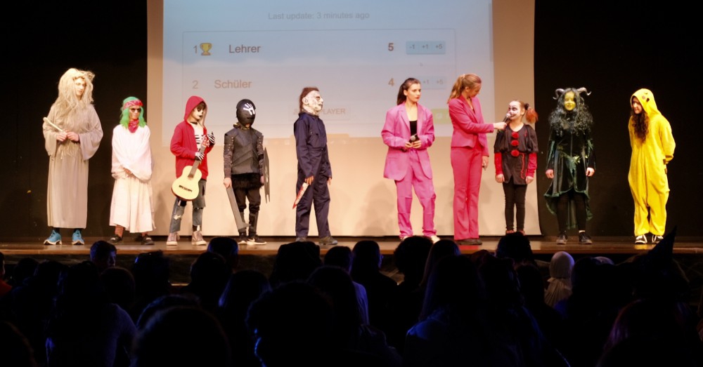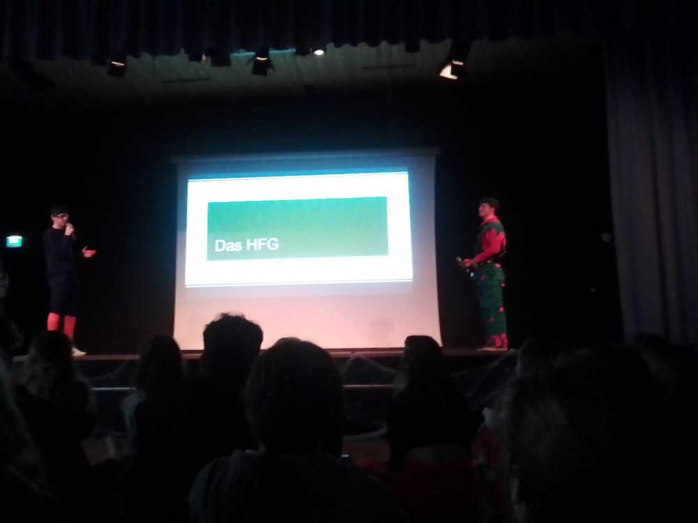 Am Schmutzigen Donnerstag, dem 17.02.2023, fand im Forum des HFG die lang ersehnte Fastnachtsfeier zum Motto HF-Gruselschule statt. Auch die Lehrer trugen ein originelles Kostüm. Sie überwachten die schaurige Schülerschaft als Ghost-Busters. Das vielseitige, von der Jahrgangsstufe 1 aufgestellte Programm stieß wie jedes Jahr bei der gesamten Schulgemeinschaft auf positive Resonanz. Einige Schülerinnen und Schüler wurden miteinbezogen und konnten bei zahlreichen Spielen gegen verschiedene Lehrkräfte antreten. Aber auch für die Zuschauerinnen und Zuschauer war die Feier kurzweilig gestaltet und alle warteten immer wieder voller Euphorie auf den nächsten spannenden Programmpunkt. Bei den Schüler-Lehrer-Spielen feierten die Schülerinnen und Schüler ihren Sieg. Allgemein war die Stimmung ausgezeichnet, alle amüsierten sich gut und genossen die Unterhaltung der Stufe 11: Die kreativen Spiele, einstudierten Tänze und natürlich der selbstgedrehte Film waren sehr beliebt. Die Lehrerinnen und Lehrer sowie die Schülerinnen und Schüler erfreuten sich wie immer daran und hatten viel Spaß beim Mitgestalten und Zuschauen. Die Feier war wieder einmal ein Riesenerfolg und bald darauf wurden alle glücklich in die Ferien entlassen.