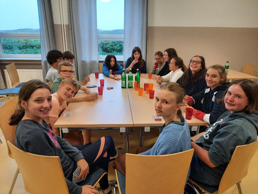 Auch die Klasse 8c hat sich zum Schuljahresende in Begleitung von Frau Bührer und Herrn Cleiß auf den Weg in den Norden Deutschlands gemacht. Sehr früh am Sonntagmorgen ging es mit dem Zug los – und am Abend bezogen alle ihre Zimmer im Jugendgästehaus „Pidder Lüng“ in Hörnum, das für die nächsten Tage unser „Zuhause“ war.