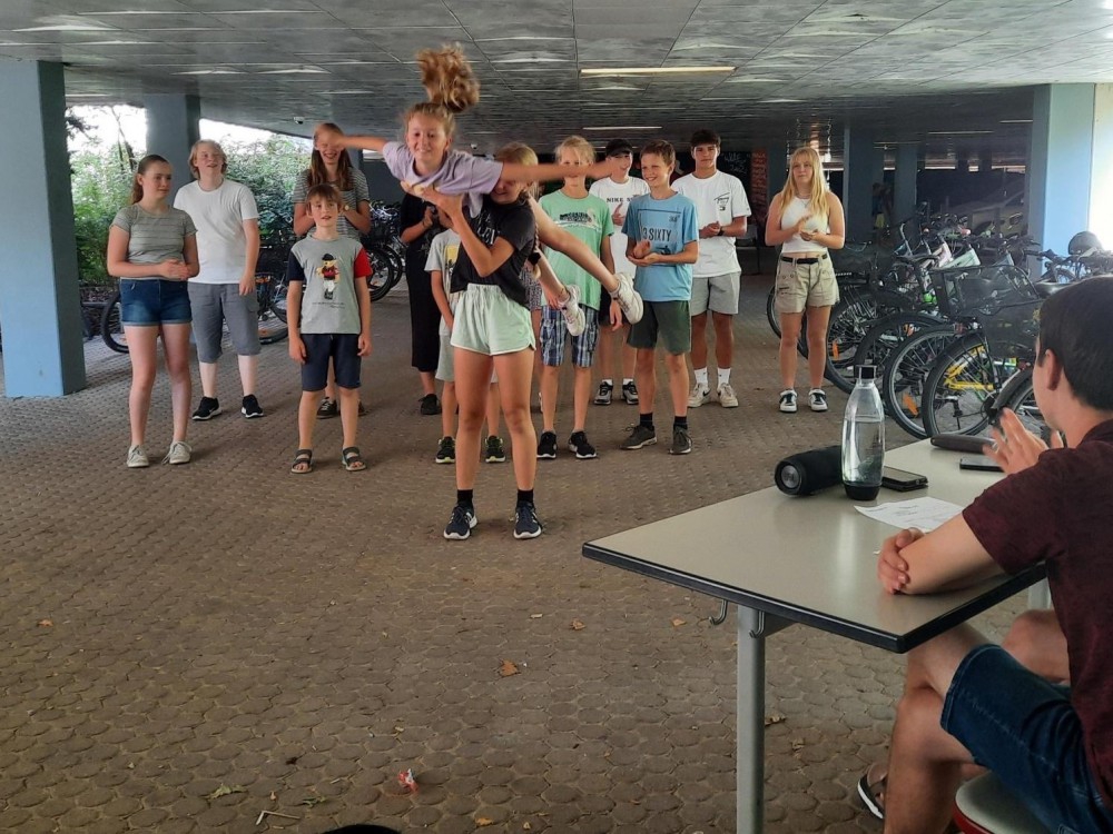 Nach langer Coronapause konnte dieses Schuljahr endlich wieder die SMV-Olympiade stattfinden. Als 2019 das erste Mal der SMV-Tag geplant wurde, war die Resonanz der Schülerschaft sehr positiv. Umso mehr freuten sie sich auf das diesjährige Programm. Am letzten Montag vor den Sommerferien liefen die Schülerinnen und Schüler in Gruppen, welche stufenübergreifend eingeteilt wurden, zu ihren jeweiligen Stationen. Diese waren auf dem gesamten Schulgelände verteilt. Stationen wie Länderumrisse, Sprachen, Gerichte und Flaggen erraten, sowie das Tanzen verschiedener Volkstänze kräftigten das Kulturempfinden und stärkten die Schulgemeinschaft innerhalb der Gruppen. Auch das Liedergurgeln war ein großer Spaßfaktor.