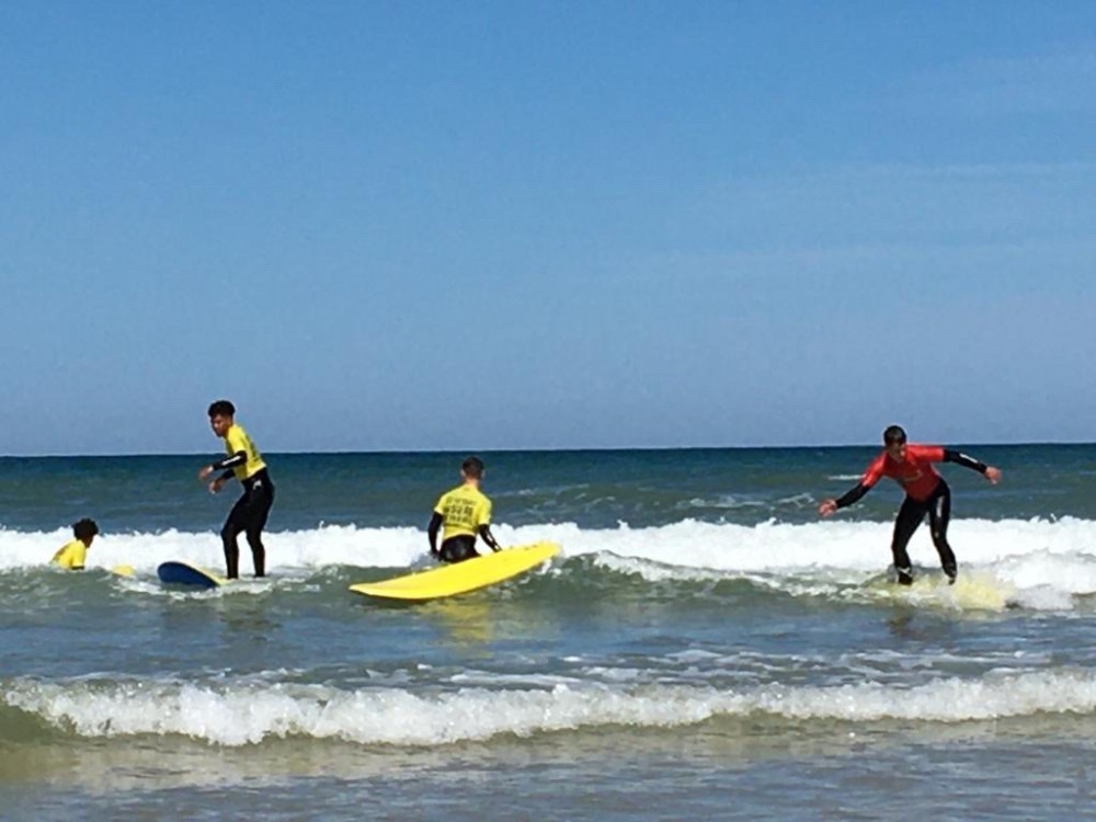 Angekommen im Camp wurde den Schülern das Betreueteam vorgestellt und direkt die Neoprenanzüge ausgeteilt, um am nächsten Tag gleich mit dem Surfbrett im Wasser zu starten. Die morgendliche Frühsport - bzw. Yogarunde von Frau Jung belohnte das Campteam stets mit einem ausgiebigen Frühstücksbüffet, damit die Sportler auch genug Energie für den Surfkurs und die anschließenden freiwilligen sportlichen Aktivitäten am Strand hatten.