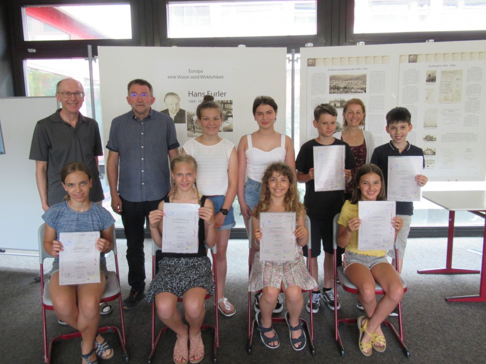 In den Monaten April und Mai fand die Abschlussprüfung für die Lerngruppen statt. Diese bestand aus einer 10-Minuten-Abschrift. Eine weitere 10-Minuten-Abschrift war für das Bundesjugendschreiben anzufertigen. Das ist ein deutschlandweiter Wettbewerb, an dem Schulen und Stenografenvereine teilnehmen. Ausrichter ist der Bundesverband für Computer, Kurzschrift und Medien. Erstmals konnten die Schüler/innen der Anfängergruppen des HFG ihre erworbenen Kenntnisse unter Beweis stellen. Sie waren auf der Tastatur mit 10 Fingern flott unterwegs und erzielten sehr gute, teilweise sogar Spitzenergebnisse in diesem Wettbewerb. Alle erfolgreichen Teilnehmer/innen erhielten eine Urkunde. Die besten Wettschreiber/innen konnte der Vereinsvorsitzende Gerhard Meier ehren. In einer besonderen Veranstaltung begrüßte er den Schulleiter Herr Bechtold, der sich ebenfalls über die guten Ergebnisse freute. Neben den Urkunden erhielten die Besten ein kleines Präsent des Stenografenvereines für ihre hervorragenden Leistungen.