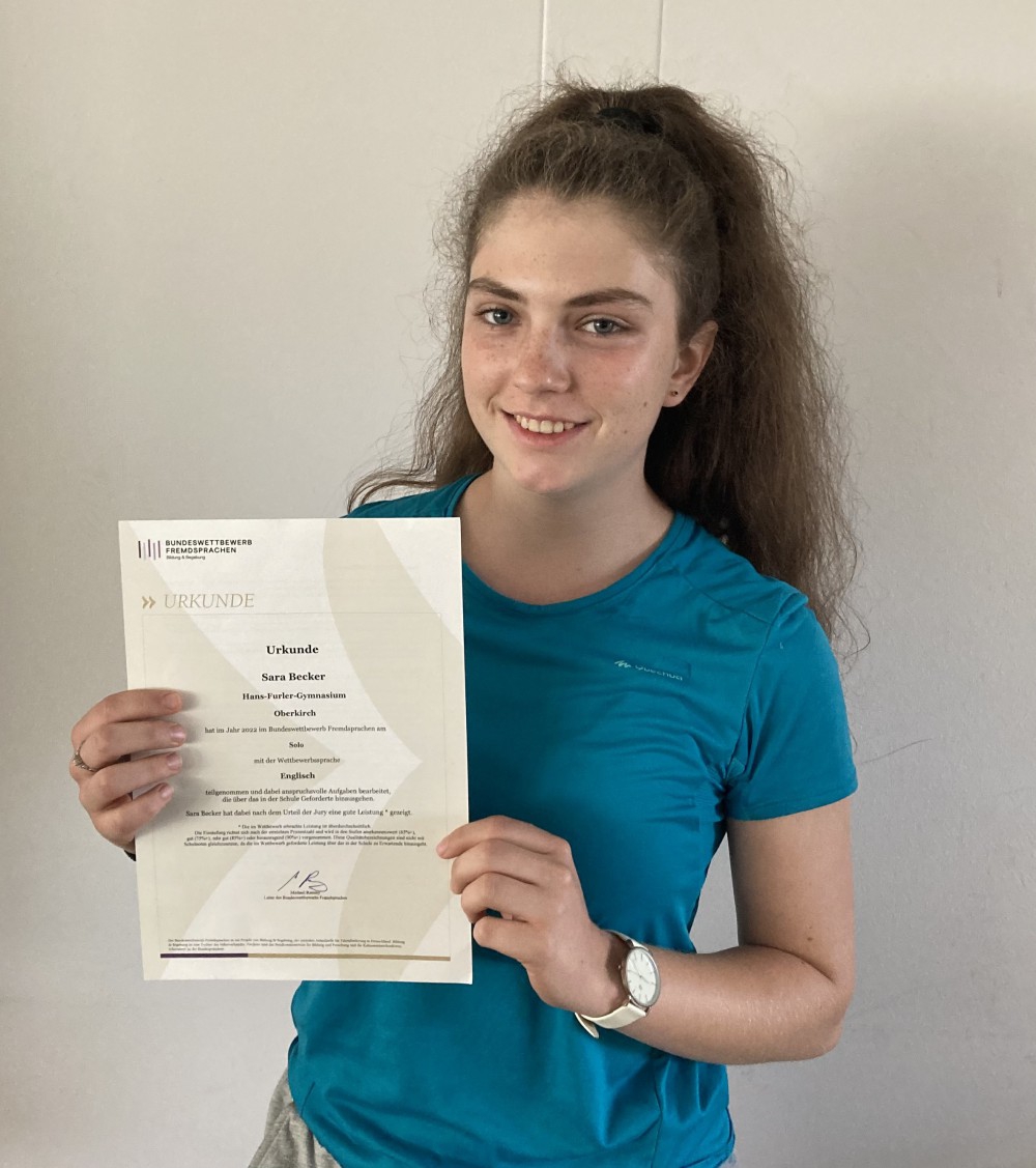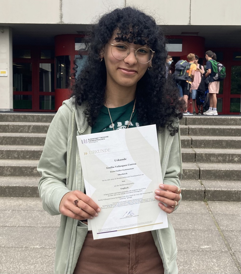 Sára erzielte einen beachtlichen 3. Landespreis und bewies somit ein ausgezeichnetes Verständnis der englischen Sprache. Noch besser schnitt Emilia ab, die mit ihrem 1. Landespreis Fähigkeiten in Englisch darlegte, die und von der Jury als hervorausragend bezeichnet wurden. Zur Belohnung für ihren 1. Landespreis wurde Emilia nun zum 4-tägigen Sprachenturnier im September in Niedersachsen eingeladen, bei der die 60 besten Teilnehmerinnen und Teilnehmer aus ganz Deutschland am Start sein werden. Beim Sprachenturnier erwarten Emilia viele fremdsprachige Aufgaben, die sie teils allein, teils zusammen mit anderen lösen wird. Von einer selbst erarbeiteten Präsentation, der Beschäftigung mit einer unbekannten Sprache bis hin zu einer fremdsprachlichen Aufführung im Team, wird alles dabei sein. Für ein Literaturgespräch wird sogar noch eine weitere Fremdsprache erwartet, in der Emilia parlieren kann. Sára und Emilia können stolz sein auf das Erreichte! Und Emilia wünschen wir alles Gute für das Sprachenturnier im September, bei dem sie sich mit den besten ihrer Altersklasse in Deutschland messen kann, und dabei auch eine hervorragende Repräsentantin des HFG sein wird. Viel Erfolg, Emilia, und viele interessante Begegnungen und Erfahrungen beim Sprachenturnier 2022!