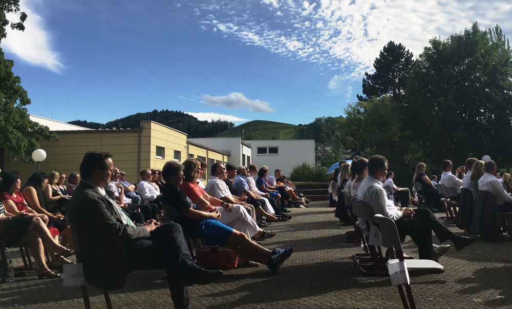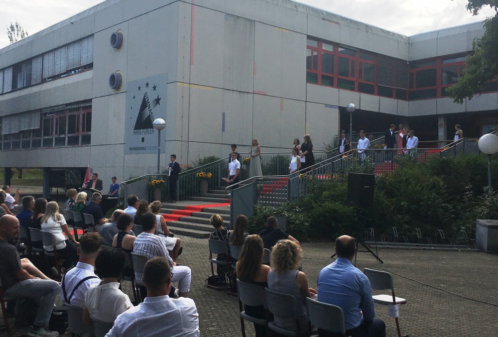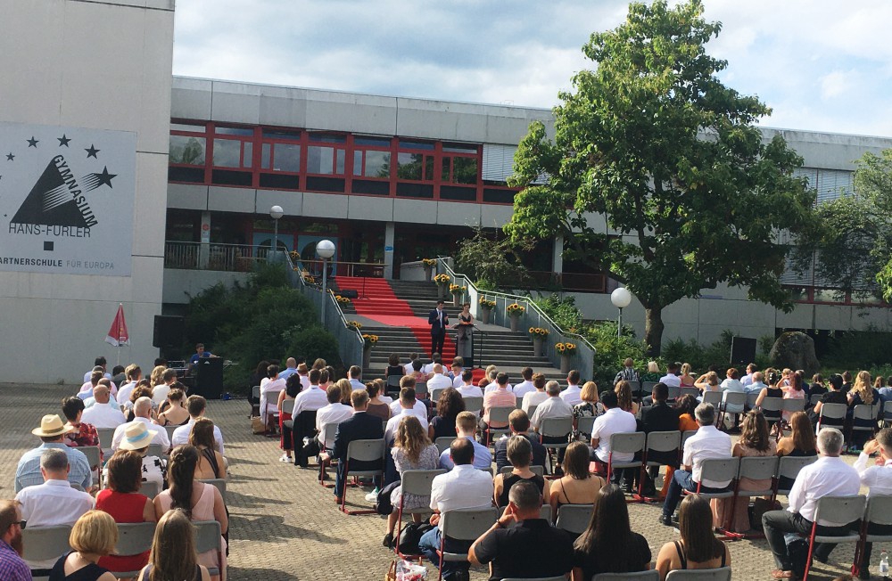 Das Hans-Furler-Gymnasium verabschiedete am Dienstag, den 28. Juli 2020 seine Abiturientinnen und Abiturienten. 76 Schülerinnen und Schüler nahmen einen Tag nach den mündlichen Prüfungen im Rahmen einer Open-Air-Abschlussfeier ihr Reifezeugnis entgegen. Die Stufe erreichte zusammen einen Schnitt von 2,1. Das beste Ergebnis erarbeitete sich Lisa Stumm mit 888 von 900 möglichen Punkten und der Traumnote von 1,0. Vier Schülerinnen und Schüler gingen mit einem Schnitt von 1,1 durchs Ziel: Lilly Schütze, Merle Altegoer, Jan Schwab und Nina Dong. Insgesamt stand bei 19 Abiturientinnen und 11 Abiturienten die 1 vor dem Komma. 7 Schülerinnen und Schüler erwarben gleichzeitig auch das französische Abitur. Und auch hier erzielte Lisa Stumm das beste Resultat.