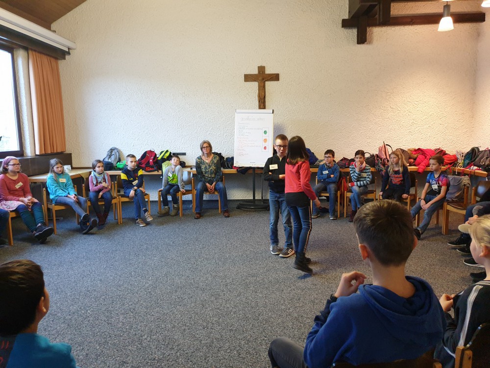„In Frieden leben-In Ruhe arbeiten-Erfolg im Leben“ - das sind die drei Ziele des Freiburger Sozialtrainings, welches die gesamte 5. Jahrgangsstufe des Hans-Furler-Gymnasiums derzeit an mehreren Tagen im Gemeindehaus St. Michael absolviert. Gemeinsam mit den jeweiligen Klassenleitungen, der Schulsozialarbeiterin und der Trainerin Susanne Rechsteiner soll der (gewaltfreie) Umgang mit Konflikten reflektiert und trainiert werden. Die Schüler lernen dabei den „Präfrontalen Cortex“ kennen, den Teil des Gehirns, der letztendlich für die Selbstkontrolle verantwortlich ist. Bedürfnisaufschub und Frustrationstoleranz spielen dabei die entscheidende Rolle.