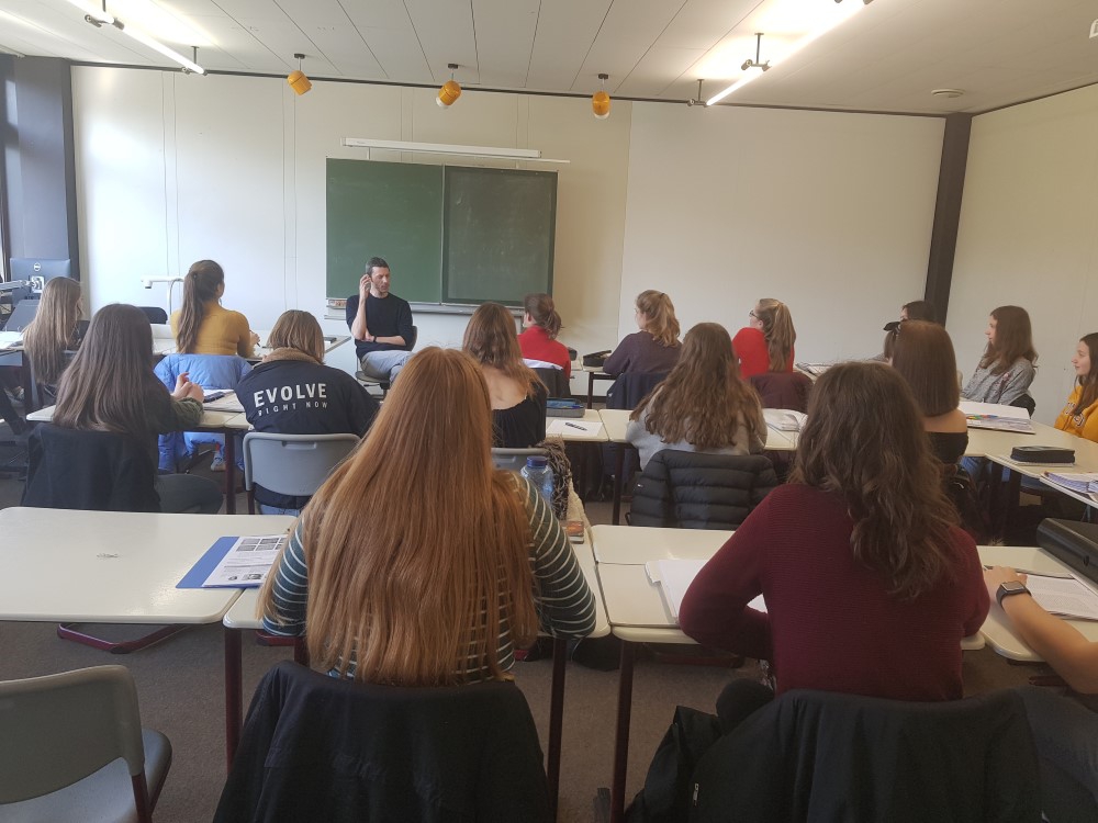Schon über mehrere Wochen beschäftigten wir, die Klasse 10a, uns im Fach Deutsch bei Frau Käckermann mit den unterschiedlichsten Erzählungen von Herr Dr. Landerl, analysierten diese und untersuchten sie auf das Genaueste. Und doch erschien es uns, als wäre nach der Fragerunde mit Herrn Dr. Landerl das erste Mal ein Schleier vor unseren Augen verschwunden, welcher den Blick auf das, was hinter den Zeilen der Geschichten liegt, freigibt. Natürlich hatten wir Schüler uns davor schon mit diversen Kurzgeschichten des gebürtigen Österreichers auseinander gesetzt um Einblicke zu bekommen und um uns auf die Fragerunde vorzubereiten, doch seine detaillierten und oft auch sehr persönlichen Antworten verblüfften uns alle und nahmen uns mit auf eine Reise hinter das bedruckte Papier.