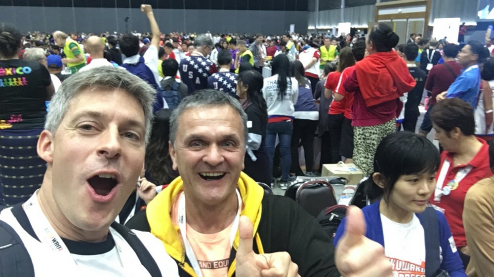 Auch am zweiten Tag legten unsere Jungs und ihr Lego-Roboter einen perfekten Parcours hin: volle Punktzahl und sehr gute Zeit (hier  der Lauf). Großartige Leistung, zumal es nun noch eine Überraschungsaufgabe gab, die in kürzester Zeit komplexe Programmierarbeit nötig machte. Und am Ende ein Platz in der absoluten Weltelite: Rang 5 und nur knapp hinter dem Weltmeister aus Taiwan.