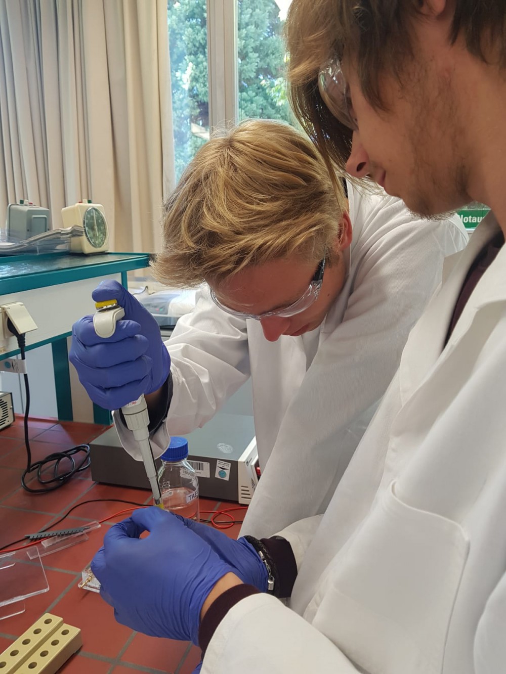 Das NaT-Working Projekt (Regierungspräsidium Freiburg) bot wie in den vergangenen Jahren in Kooperation mit der Universität Freiburg (Institut für Biochemie und Molekularbiologie) den eintägigen Uni-Tag für Schüler/innen der Kursstufe 2 an. Vier HFG-Schüler/innen mit Profilfach Biologie bzw. Chemie konnten bei diesem eindrucksvollen Praktikum dabei sein. Ziel ist es den Schüler/innen dabei die Möglichkeit zu geben, vertiefende Einblicke in die modernen Methoden der Molekularbiologie zu gewinnen. Konkrete Experimente an diesem Tag waren ein PCR Ansatz, eine Gelelektrophorese, ein Proteinnachweis mit Antikörpern und ein Western-Blot