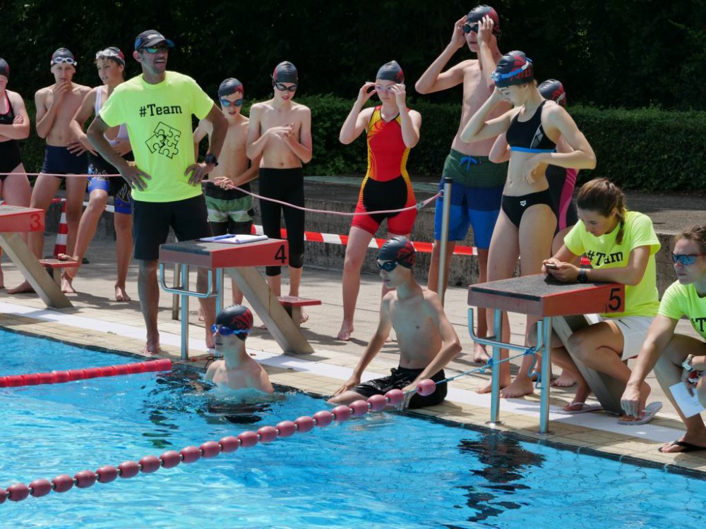 Zwar war die Stimmung bei den Schülerinnen und Schülern der Klasse 8d wegen der Müdigkeit noch etwas gehemmt, als sie sich frühmorgens gemeinsam mit der betreuenden Lehrerin Frau Börschig auf den Weg zum Triathlon in Karlsruhe machten, aber die Vorbereitungen liefen schon auf Hochtouren. So wurden Fahrräder verladen und erstmal hieß es der Weg ist das Ziel. Als die Schülerinnen und Schüler Karlsruhe dann endlich erreichten, war die Aufregung groß. Denn jetzt würden das, wofür vorher so oft trainiert wurde, auch in die Tat umgesetzt. Am Triathlon Gelände angekommen war zwar noch etwas Geduld gefordert, aber als es dann losging waren alle voll dabei. Während manche beim Schwimmen schneller waren, holten andere dafür beim Radfahren Zeit auf. Auf der Laufstrecke wurde dann nochmal alles gegeben und so schaffte es schließlich auch jeder ins Ziel. Danach wurde gefeiert- egal, ob schnell oder doch etwas langsamer, denn es heißt ja „dabei sein ist alles“. Aber es konnten auch große Erfolge erzielt werden. Während das Treppchen bei den Jungs komplett vom HFG besetzt wurde (1.Justus Kalt, 2.Luke Schwall und 3. Raul Steigerwald), gab es auch bei den Mädchen einen starken 3. Platz (Nadine Dichtl).
