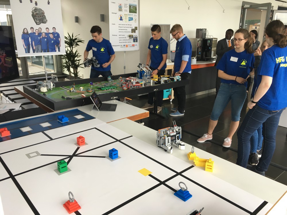 Begleitet von ihrem Coach Raphael Blessing wurde die LEGO-Robotik, sowie das Forschungsprojekt zum Thema Hydrodynamics vorgestellt. Des Weiteren fanden sich auch viele Interessierte für die Vorführungen des neu erarbeiteten Konzepts im Rahmen des anstehenden Wettbewerbs der World Robot Olympiad. Mit ihrem Sieg in Baden-Baden hatte sich ein Teil des Teams für das Deutschland-Finale am 16. und 17. Juni in Passau qualifiziert.