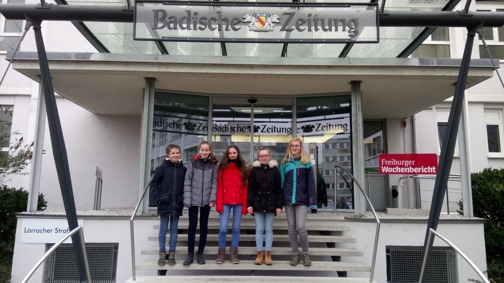 Die Vorfreude war groß, als sich die Schülerreporterinnen des HFG aufmachten, um einmal vor Ort zu sehen, wie eine Zeitung gemacht wird. Die Möglichkeit dazu bot den Schülerinnen das Zischup-Projekt, ein Projekt der Badischen Zeitung in Zusammenarbeit mit der Pädagogischen Hochschule Freiburg zur Schreibförderung. Die Schülerinnen und Schüler lesen acht Wochen lang die Badische Zeitung und sollen selbst Texte für eine Sonderbeilage produzieren. Ein Projekt, wie gemacht für die Schülerinnen des HFG.