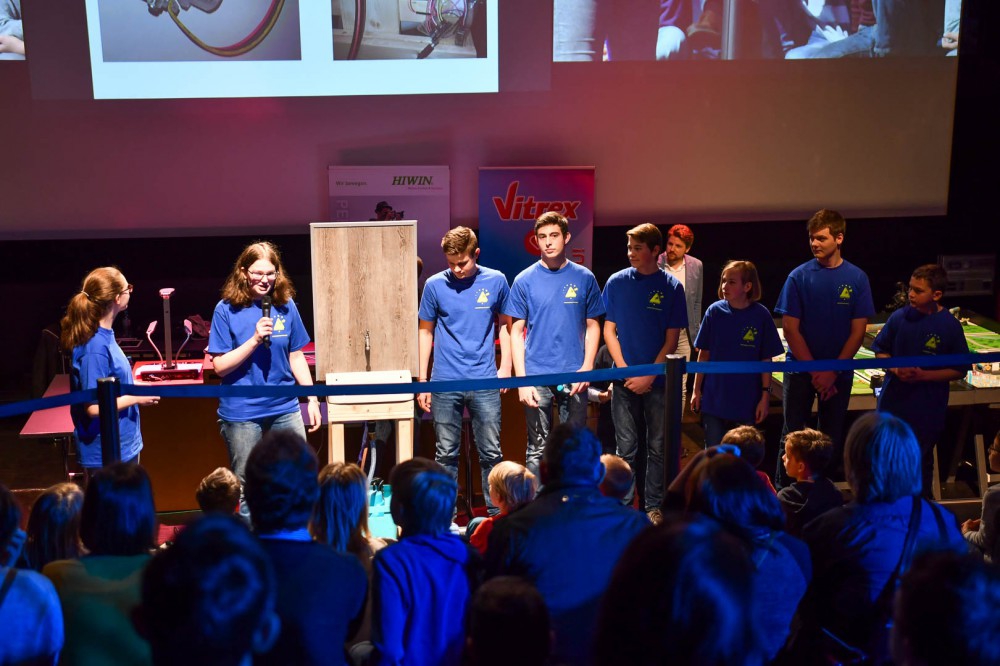 Das Team HFG-Robokirch mit seinem Coach Janosch Endstrasser konzipierte hierfür eine Nebeldusche, welche circa 95% des Wasserverbrauchs beim Duschen sparen sollte. Sie stellten ihre Idee durch eine Parodie der Sendung „Die Höhle der Löwen“ vor, und erzielten den dritten Platz in der Kategorie Forschungsauftrag.