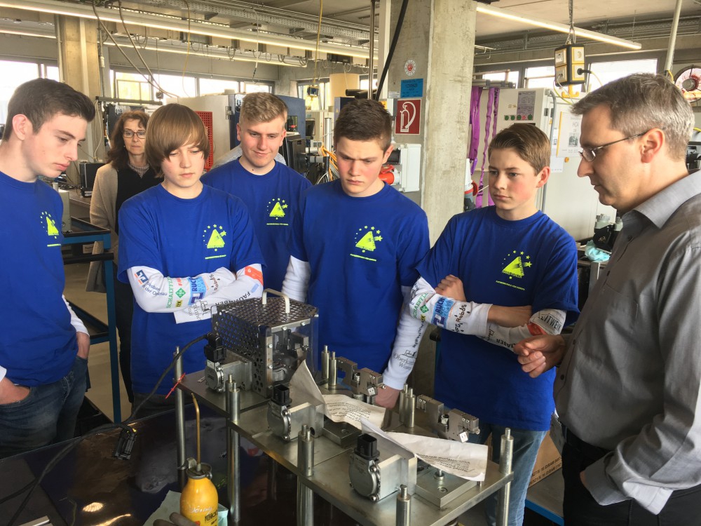 Im Anschluss daran durften die Schüler nach einer kurzen Firmenvorstellung den Ingenieuren, Informatikern etc. bei deren Arbeit über die Schultern schauen. Im Rahmen einer Führung durch die Betriebe konnten so Einblicke in die unterschiedlichsten Berufsfelder erlangt werden und spannende Prozesse bei Dienstleistungen oder der Forschung und Entwicklung bis hin zur Produktion verfolgt werden.