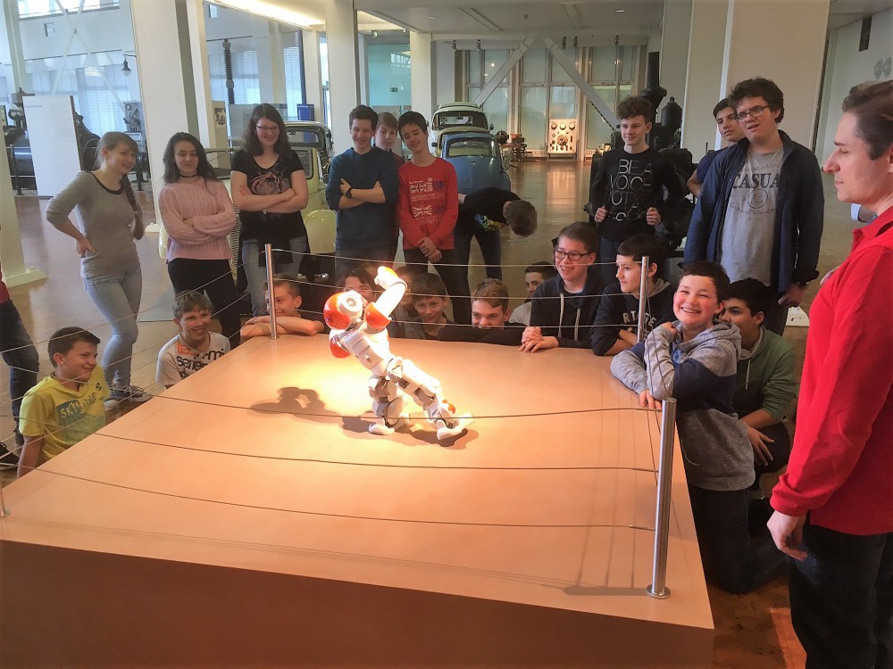 Besonders das untere Stockwerk mit den neusten technischen Errungenschaften löste bei vielen großes Staunen aus. Interesse weckte beispielsweise der Roboter Paul, ein etwas älterer Roboter, der laufen, greifen und tanzen kann. Spannend fanden einige auch ältere Artztaustattung, Kleidung und Implantate. Nach einer Mittagspause fanden dann für alle Klassen Führungen statt, beispielsweise über Bionik, also technische Errungenschaften, die von der Natur inspiriert wurden, wie eine Infrarotkamera.