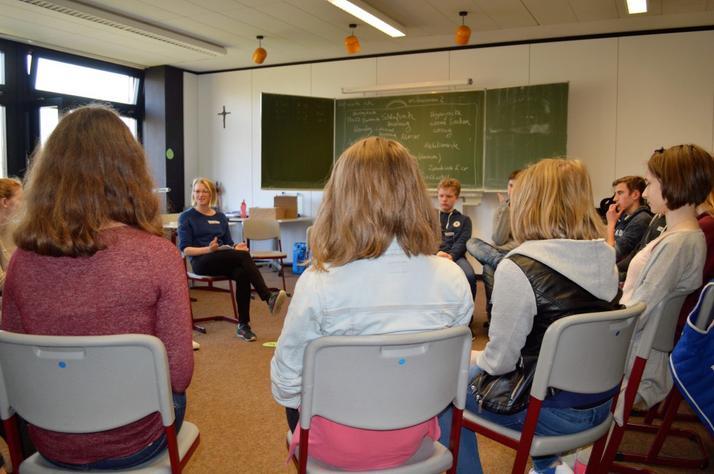 Auch gab es ein kurzes Quiz und später eine Diskussion mit der Klasse und der „Care“-Mitarbeiterin, in der das Gelernte nochmals vertieft wurde und die unterschiedlichen Meinungen der Schülerinnen und Schülern vorgetragen werden konnten. Im abschließenden Feedback und kurzem Brainstorming wurde klar, dass alle Schülerinnen und Schüler viel dazugelernt haben und mit einer ganz neuen Perspektive auf die Flüchtlingssituation in Deutschland, aber auch der ganzen Welt aus diesem Workshop herausgegangen sind.
