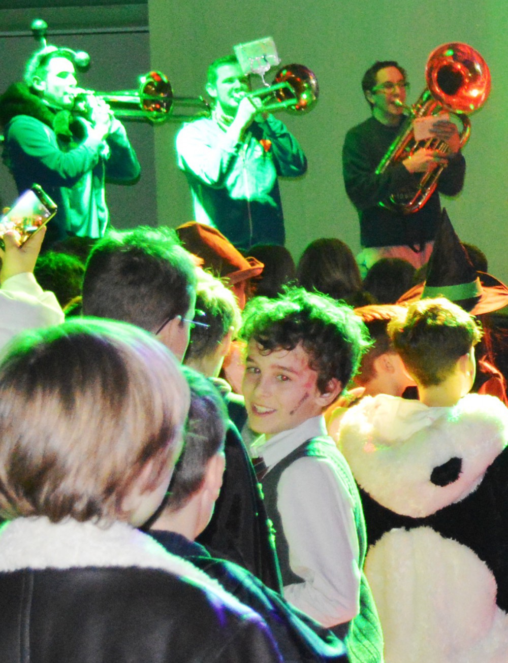 Abgerundet wurde die Feier durch das Auftreten der Haslacher Guggemusik "Thurgau Wängscht", die dem HFG einen kurzen Besuch abstattete, um mit ihrer närrischen Musik den Schlussakkord der Feier zu blasen und damit Schüler und Lehrer in ihre Ferien zu entlassen.