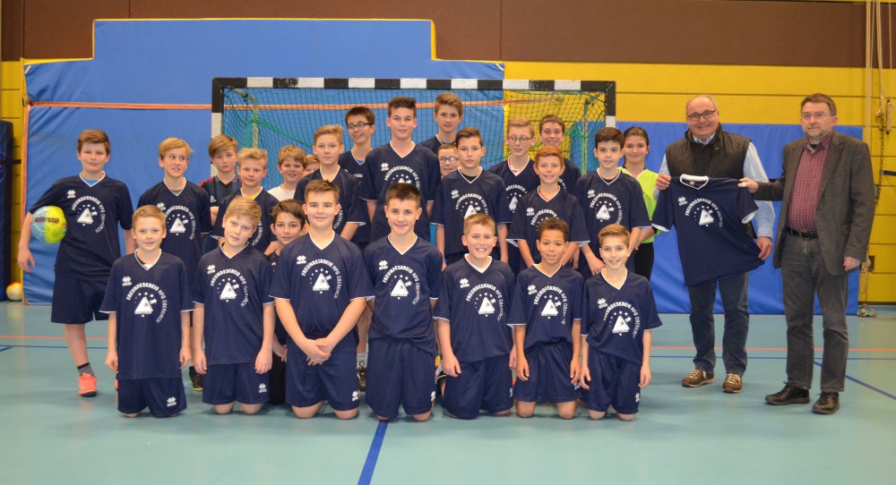 Der Sport spielt am HFG eine besondere Rolle - nicht nur, weil es sich um Profilfach handelt. Gerade für die Mannschaftssportarten ist ein einheitliches Auftreten dabei wichtig: Es schafft Identifikation und stärkt dem Teamgeist. Deshalb freute sich der Fußball-Club des HFG sehr über die großzüge Spende des Freundeskreises: einen Satz neuer Schultrikots, übergeben durch den Vorsitzenden des Freundeskreises Herr Schmidt. Es bleibt zu wünschen, dass die neuen Trikots die Fußballer nicht nur gut kleiden, sondern auch Glück in den kommenden Spielen bringen.
