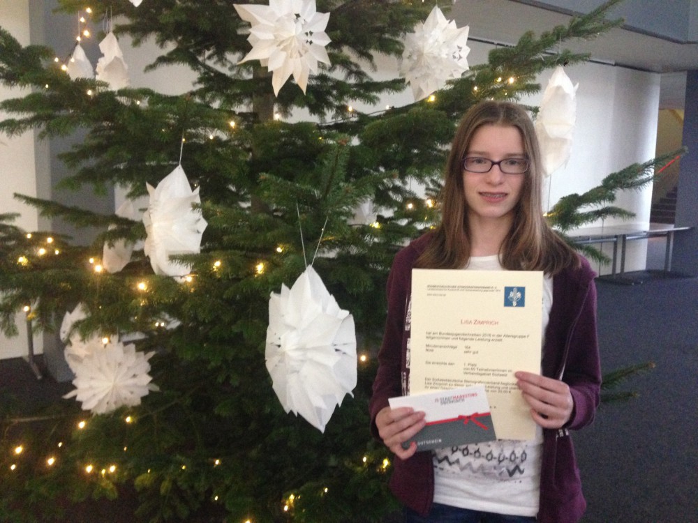 Lisa Zimprich (Klasse 7a) gewinnt beim "Bundesjugendschreiben". Bericht einer Schülerreporterin.