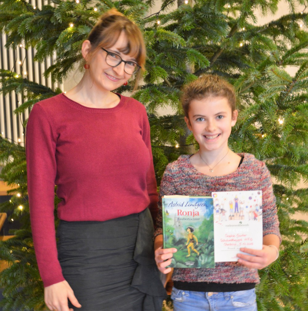 Die Schulsiegerin Sophie Ganter mit ihrer Deutschlehrerin Aisha Hellberg