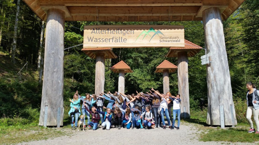 Klasse 8a mit Herrn Kehret und Frau Sayed bei den Allerheiligen Wasserfällen im Nationalpark Schwarzwald