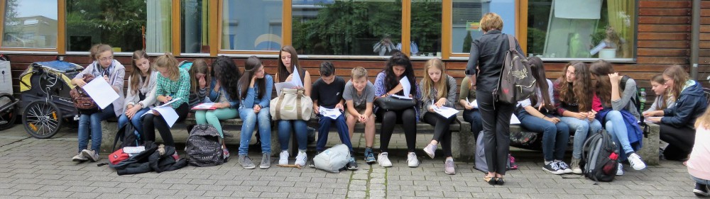 Bei einem Streifzug durch das Vauban-Viertel wurde ein französischsprachiges Dossier zu diesem architektonisch interessanten und sehr grünen Stadtteil bearbeitet. Nach einem gemeinsamen Picknick am Fuße des Schlossbergs erkundeten die Schüler anhand einer deutschsprachigen Rallye die Freiburger Altstadt.