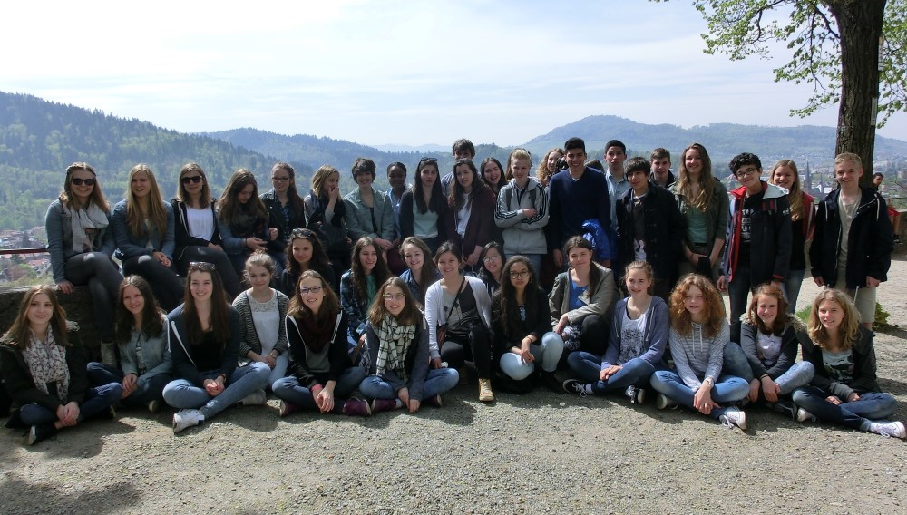 Vor der mit Spannung und etwas Nervosität erwarteten Ankunft wurden noch schnell die wichtigsten Vokabeln und Rituale zur Begrüßung unter den Deutschen ausgetauscht. Und dann fuhren auch bereits 21 französische Schüler und 2 begleitende Lehrer mit ihrem Bus in der Busschleife vor. Die jeweiligen Austauschpartner waren schnell gefunden – denn vorher wurde schon fleißig elektronisch kommuniziert. Auf dem Programm standen ganz traditionell die Teilnahme am Unterricht, eine Wanderung zur Schauenburg und ein gemeinsamer Ausflug nach Freiburg. Nach einer Stadtführung mit historischen und aktuellen Hintergrundinformationen wurde dort auf dem Schlossberg bei herrlicher Aussicht und frühlingshaften Temperaturen gepicknickt, bevor die Schüler in Kleingruppen auf eigene Faust die Stadt erkundeten. Das individuell gestaltete Wochenende verbrachten viele Partner im Europapark, mit Grillen, sportlichen Aktivitäten oder beim Einkaufsbummel in Oberkirch und Umgebung.