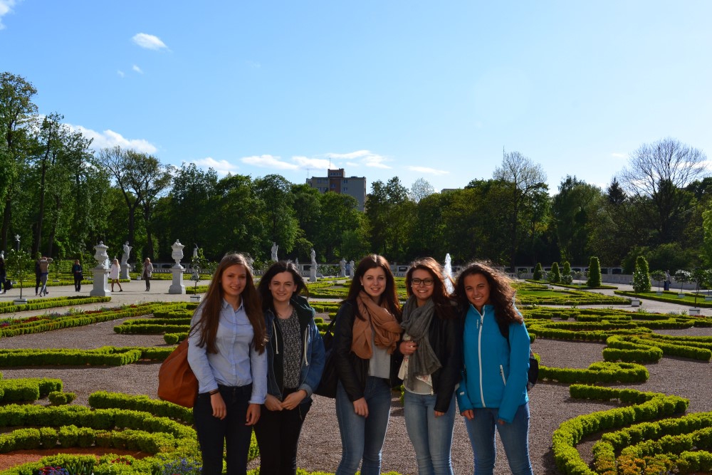 12 Schuelerinnen nehmen am POLEN-Austausch 2015 teil. Beginn der Tour in Warschau. Die polnische Hauptstadt verbluefft als boomende und kontrastreiche Großstadt. Die Schuelerinnen begaben sich u.a. auf die Suche nach Spuren jüdischen Lebens zur Zeit des 2. Weltkriegs. In ihren Gastfamilien lernten sie den Alltag gleichaltriger polnischer Kameradinnen kennen. Ein umfangreiches Sport- und Kulturprogramm ergänzte die Begegnung in der Masurischen Seenplatte, ganz im Nordosten von Polen.