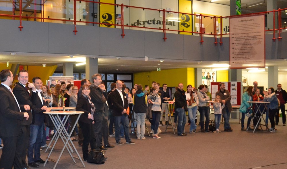Was möchte ich später einmal werden? Um einer Antwort auf diese schwierige Frage näher zu kommen, versammelten sich die Schülerinnen und Schüler der Klassenstufen 9 und 10 im Pädagogischen Zentrum zum Studien- und Berufemarkt, welcher von der Schule und dem Elternbeirat organisiert wird. Dieser ist Teil der umfassenden Studien- und Berufsorientierung am Hans-Furler-Gymnasium. Vertreter verschiedenster Berufszweige, sowie Eltern und ehemalige Schülerinnen und Schülern informieren über interessante Studiengänge und Berufe. In jeweils drei Vorträgen à 45 Minuten, berichten diese über Studienzeit, Tätigkeitsbereich und vieles mehr. Dies bietet eine gute Möglichkeit, Jugendliche für einen Beruf zu begeistern und ihnen die Entscheidung für die Richtung ihrer Zukunft zu erleichtern. Besonders gefragt war auch das Angebot der Referendare des HFG, die den Schülern vermittelten, was es überhaupt heißt zu studieren. Kulinarisch unterstützt wurde der Abend durch die Klassenstufe 8, welche Geld für die bevorstehende Englandfahrt sammelt.
