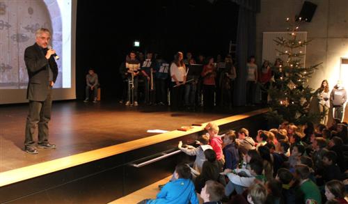 Religionslehrer Markus Aronica führte durch die Weihnachtsfeier der Unterstufe.