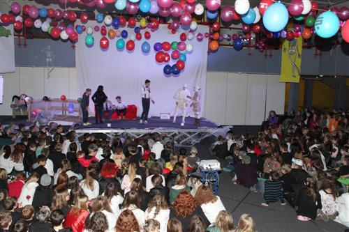 Die Jahrgangsstufe 1 übernahm am Schmutzigen das Szepter. Auf dem Programm stand die Schule als "Gruselkabinett", so zumindest das Motto. Entsprechend "gruftig" waren Schülerinnen, Schüler und Lehrkräfte kostumiert. Eine veritable "Guggemusik" aus Schülern der Stufe 1 sorgte gleich zu Beginn für die richtige Stimmung. Natürlich gab es auch wieder närrische Spiele für Schüler und Lehrer und ein ausgelassenes Bühnenprogramm. Mit guter Laune zog die Schulgemeinschaft in die unterrichtsfreie 5. Jahreszeit.